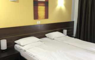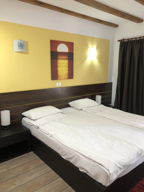 Apartamentele de 2 dormitoare sunt situat la etajul 1 al corpului secundar. Fiecare apartament dispune de cate doua dormitoare (fiecare cu baie proprie), living, televizoare in fiecare camera si sitem de televiziune prin cablu.